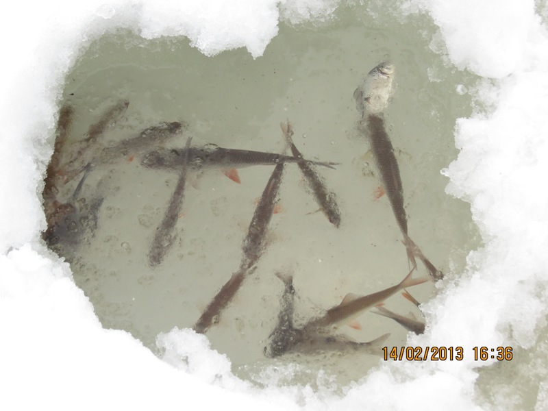 • Был с пятницы по воскресенье с товарищем. 20 ставок. Сработок море. Не успевал кофе попить (не кофе успевал). Взяли 9 штук. Возле камышей с одной лунки - 3 шт. 3,700, 1,000, 0,600. Рядом соседняя - 3,200. На середине с одной лунки 2 шт. - мелких и 1 шт. 2,500. Гнезда у них там, что ли? На удочку слабо. Вешал на ставки местную плотву - на нее клевало активней, но почти все сходы.
