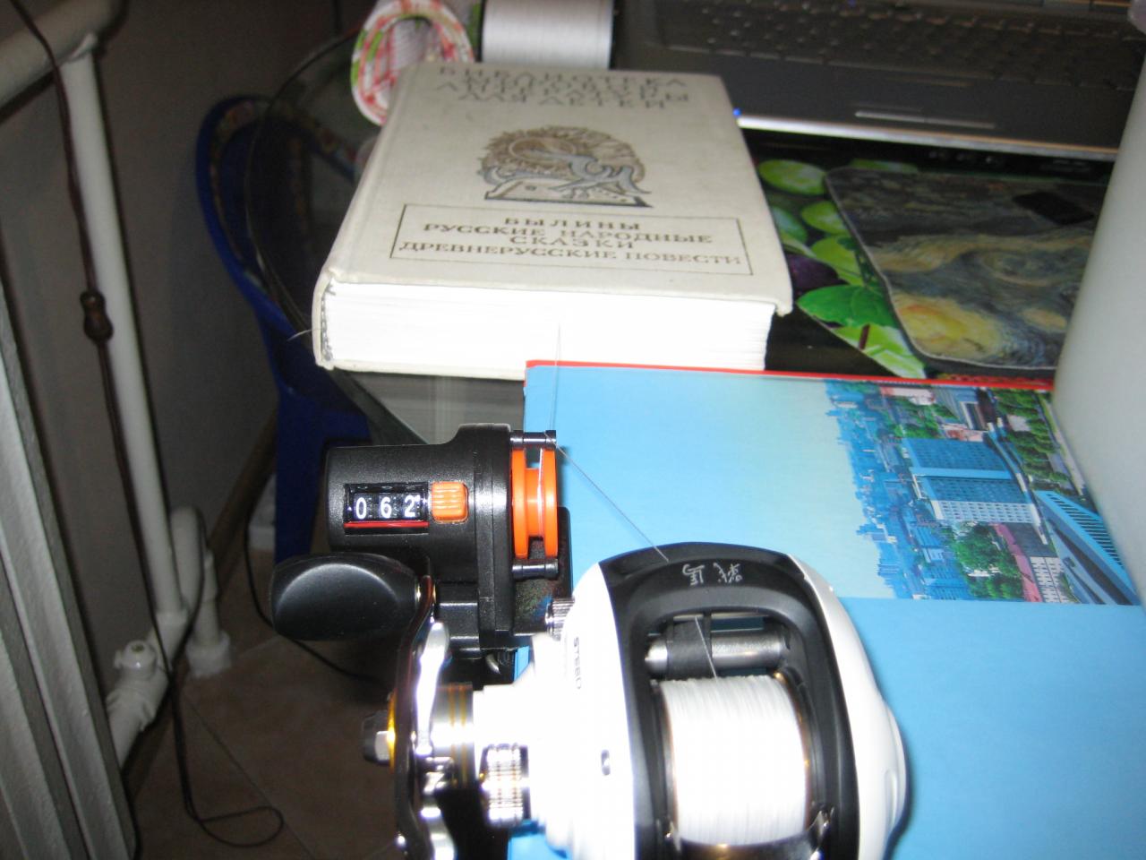 При включенном одном Цб грузикике джиг 15 грамм улетел на 75 оборотов ручки. Этот же джиг при включенных двух Цб грузиках стабильно улетал на 60-65 оборотов ручки. На фото виден результат (шпуля просвечивается), на шпулю намотано 62 метра шнура.
