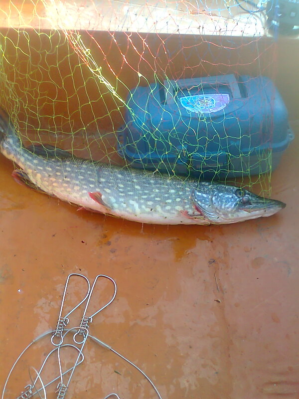 Блин , а как жене сказать , что поеду ? И так она уже пальцем у виска крутит глядя на мои душевные страдания . Но ехать то надо , до пятницы , вроде , дожди обещали , а тут такой подарок небес . А будь , что будет ! Всет ки как ни как 25 лет вместе прожили - простит и поймет . Простила , но кальсоны одеть заставила :mrgreen:. Любит значится ! Сборы затянулись ... С вечера ж не собирался . Но к пяти был уже на воде . Нормально . Ветерок правда еще тот , но 24 гр. простукивались довольно сносно . Мудрить не стал - сразу стал на точку прошлого досадного схода . Первый тычок долго ждать себя не заставил , но пока мимо . Ладно , мы терпеливые , тем более что похоже даже не укололась . Но больше с этого места поклевок не было . Смещаюсь метров на 25-30 и продолжаю маслать . Опять тычок , секунды две подержал (явно малыша) и опять сход . Не , наверное ну их эти "нормальные" двойники за две тысячи штука . Надо будет овнеровских заказать , пусть продавец и говорит , что тут (на рынке в Логойске) их ни кто не купит - я куплю . Но это потом , а теперь надо полоскать то , что есть . И мои старания были вознаграждены ! Как всегда неожиданно , вдруг , сначала удар в руку , затем прогиб палки , и треск фрикциона !!! Сидит , чувствую , что хорошо сидит , но на всякий случай , не очень сильно , в противоход делаю еще одну подсечку . Все , вогнал как в доску , теперя гулять будем мало-мало . Кончик спиннинга опускаю к воде , чтоб не выпрыгивала и не спеша , пока просто выматываю слабину , держу ее в постоянном напряге . А мандраж все таки присутствует , особенно когда к попыткам ухода в глубь и в сторону добавляются серии резких ударов , огрызается . Интересно кто там ? Вернее какой ? То , что до сошедшей в прошлый раз мамки не дотягивает - это понятно , но есть прочная уверенность в новом личном рекорде . А вот уже метрах в десяти кто то выворачивается у поверхности белым пятном , неужели леща или карася забагрил ? Нет - это брюхо , белое брюхо хорошей щуки ! Ну , голубушка , если ты в верх тормашками едешь , то можно уже и к лодке пробовать подтягивать . Тяну , вроде пока все нормально , но у подсака , как и положено , опять танцы . С третьего раза удалось ее туда заутулить ! Последние секунды сопротивления и аллилуйя ! Все ! В лодке ! Блин , хор-р-р-ошая ... Не , взвешу на берегу :D (на всякий случай). Итог- 2.515 ! Я доволен ! Нет , я счастлив !!!