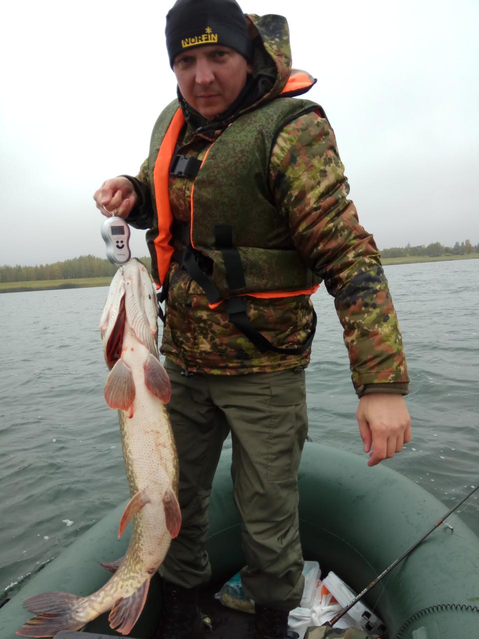 • Пару недель назад выбрались с товарищем на любимый водоем. Сумашедший ветер и дождь не смогли отбить охоту,при этом у обоих было предчувствие трофея. Искали свалы по эхолоту и вот на одном из перепадов глубин у меня произошла первая поклевка окуня грамм на 500. Окунь оказался фартовым и сошел в паре метрах от борта. Решили дальше побросать крупные воблера и на следующей точке я достаю окуня на Балисонг 130сп весом 1.400,чем ставлю личный рекорд по этой рыбе. (Фото имеется в соответствующей ветке). Пока я разбирался с окунем в лодке, коллега забросил в это же место Варуну. Когда у него взревел фрикцион, мой окунь ушел на второй план. Было ощущение, что спиннинг у него кто то хочет забрать. После минут 15 уборной борьбы показалась зубастая красавица, пришлось слегка повозиться, чтобы завести ее в подсак. К сожалению слегка не дотянула до 10 кг, но у товарища оказалась рекордной. После фотосессии щука была отпущена в родную стихию.