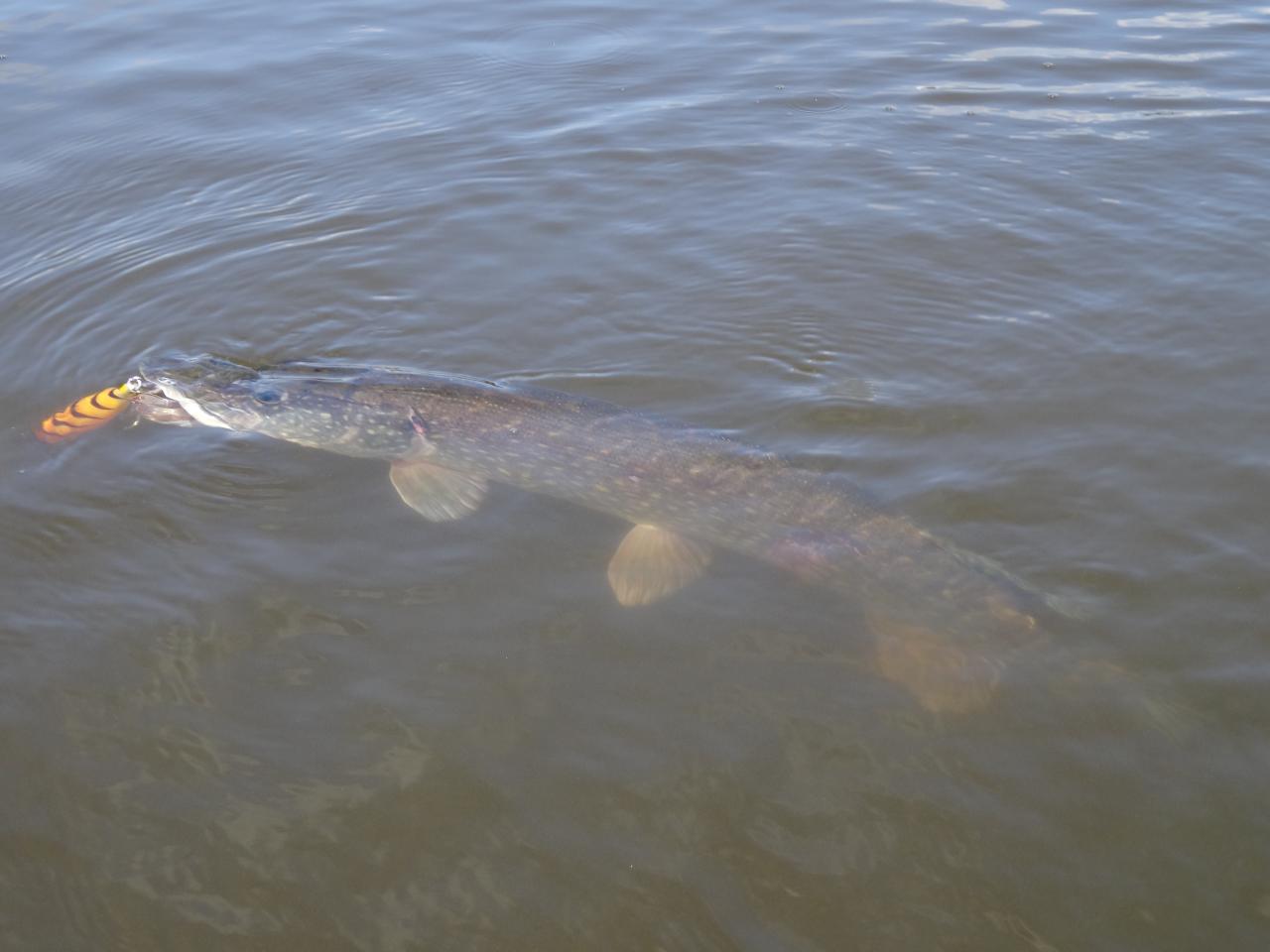 • Был вчера на одном маленьком озерце,прошол вокруг весь водоем в поисках зубастой,и только в одной точке были поклевки,причем штук 5.После первой поклевки остались лишь следы зубов на воблере,потом еще пару выходов и сход,походил опять же вокруг водоема,поклевок нет,возвращаюсь опять в ту же точку и на паузе взяла красавица на 2320.Тянуть на спин с тестом 1-8,это конечно кайф.Нажмите на изображение для увеличения.
