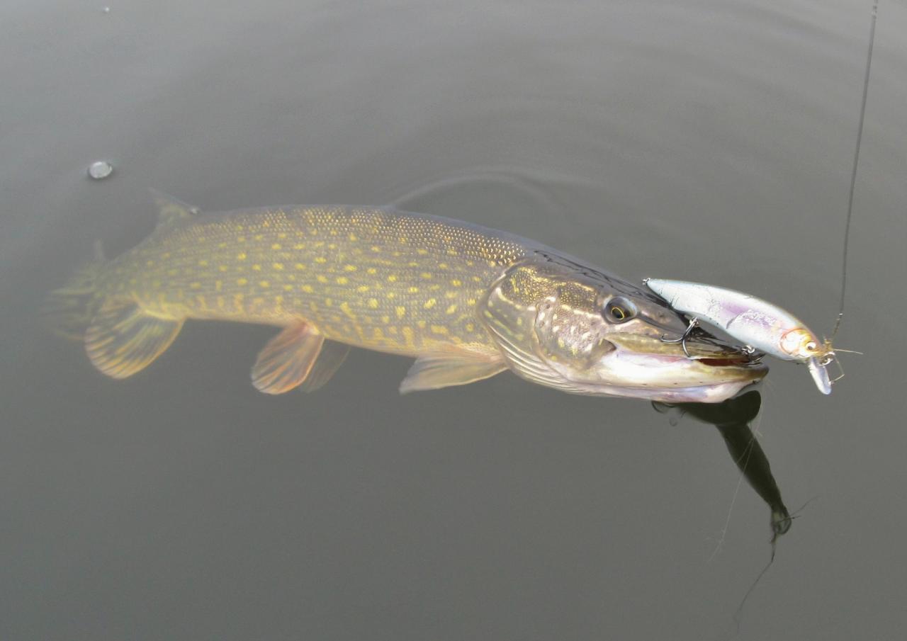 ID:	3893212 Взяла на равномерную проводку воблера с длинными паузами. Через минут тридцать выматываю воблер зацепивший траву и по привычке делаю остановку проводки у лодки. В этот момент наблюдаю атаку щуки. Промах.