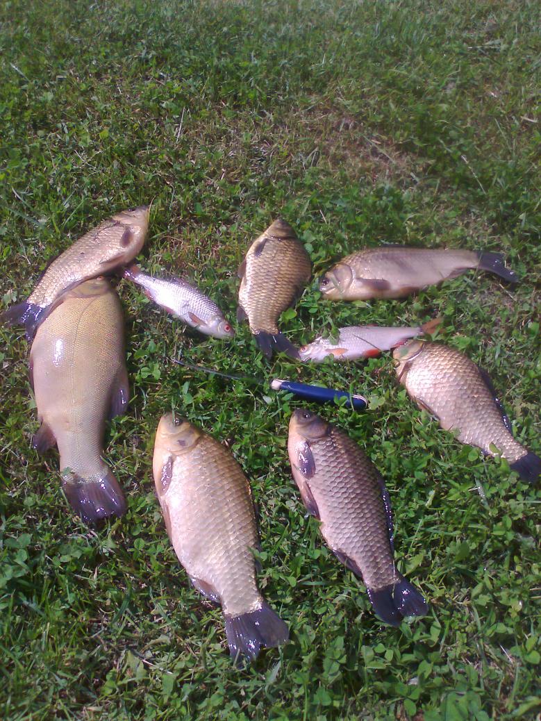 • Сегодня снова поехал на карася. На озере был в 4 00, но первую поклевку увидел в 8 00, хотя рыба гуляла по всему озеру с самого утра. Клев закончился в 9 00. Поймал 9 штук общим весом 3,2 кг.