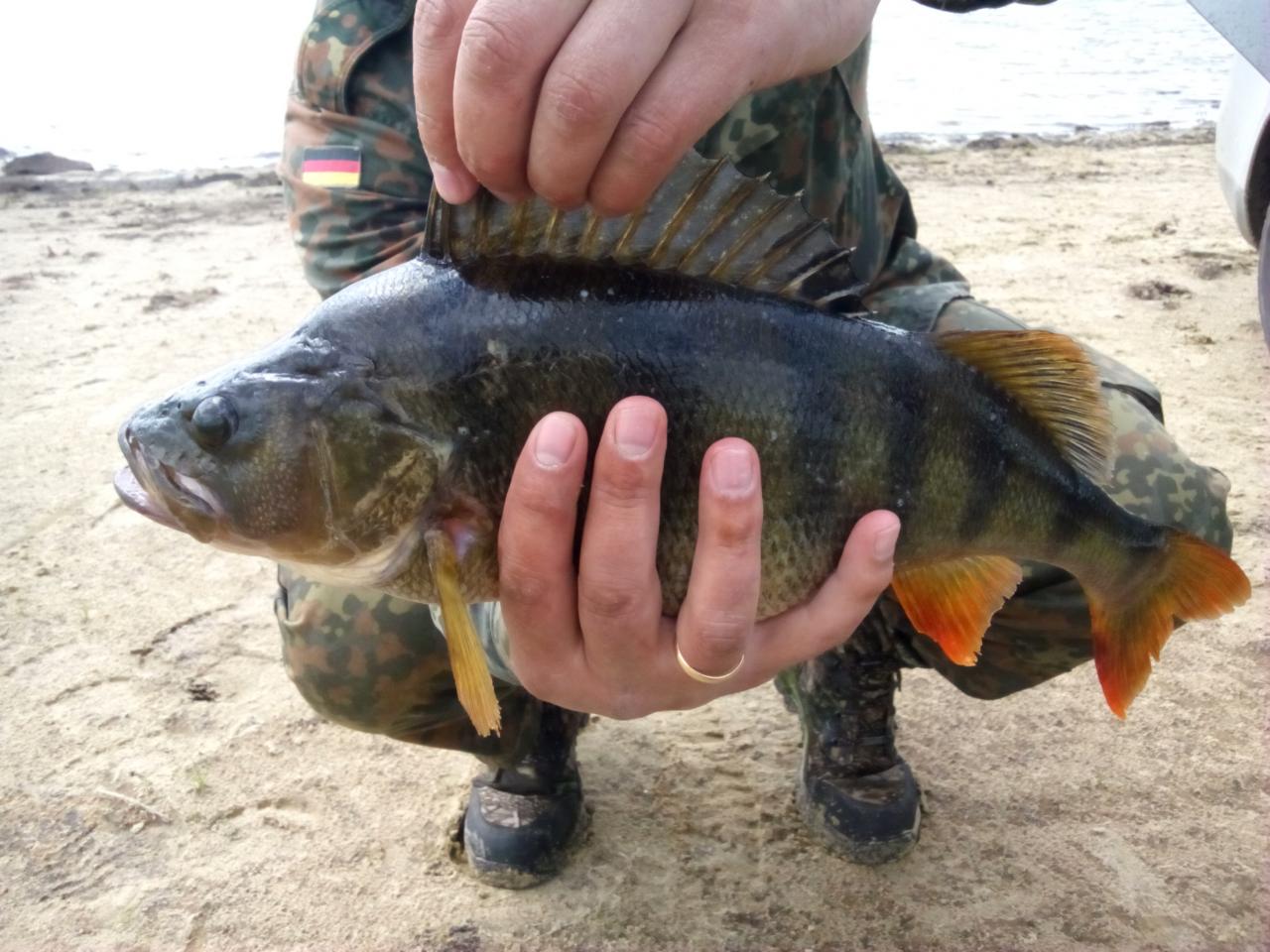 В связи с запретом на судака, искали окуня. Немножко поймали - те, которые побольше - 800 грамм плюс минус. Средний вес - полкило.