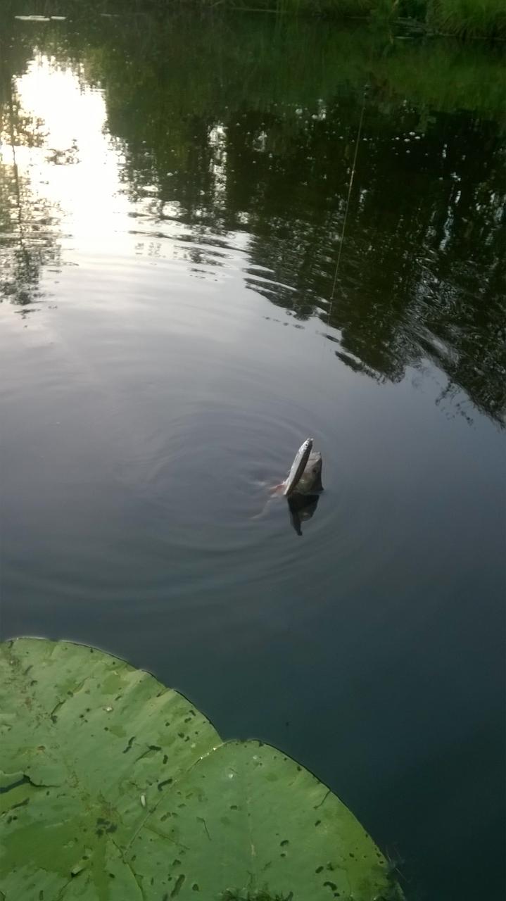 Через минуту, слышу, кто-то "чавкает", поднимаю голову, а за моей уклейкой гонится окунь))Благополучно был выловлен, фото где-то даже осталось.