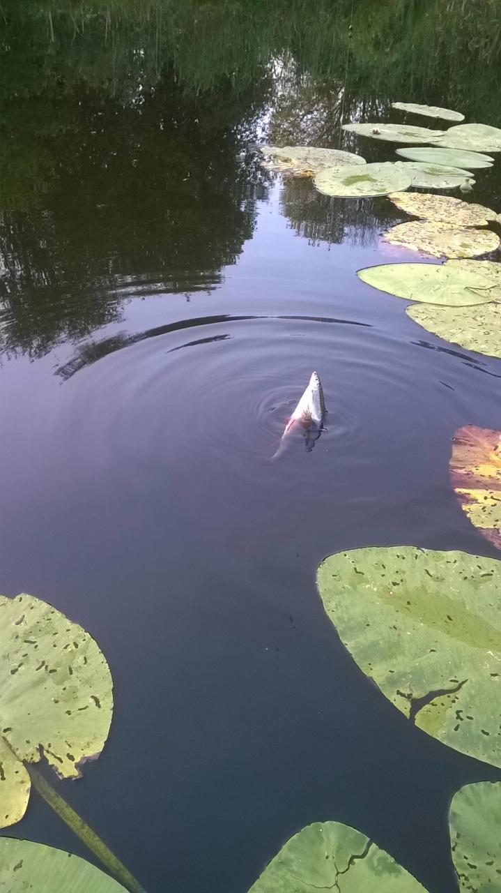 • В воскресенье на торфяниках пробовали ловить хищника,клевало только с рання,когда шёл дождь.Работали вертушки,двойки-тройки, упала и сразу крутишь,бо до травы сантов 5-30.Воблеры не проканали,попперы не оправдали надежд,колебалка принесла подлеща,забагренного под ясно око. Было по хорошему сходу,но рыбу не увидели, в толщу травы ныряет и хана. Большой завесил почти 600.Вобщем, рыба бастовала,в пол-девятого поплыли домой.В субботу вечером тоже окуня погоняли,штук 17 на двоих,без бонусов,та же стратегия. Но все это банально и обыденно,поразило другое-в одном окуне (самом мелком на фото) в брюшной полости процветал и,как водится,немного как-бы сокращался проклятый селитер! Спутать не мог,видел этих тварей много,начиная от тщедушной уклейки и заканчивая лещом на где-то треху. Может,кто сталкивался с такой уетой!?А в желудке у того окунька была личинка стрекозы или другого насекомуса.