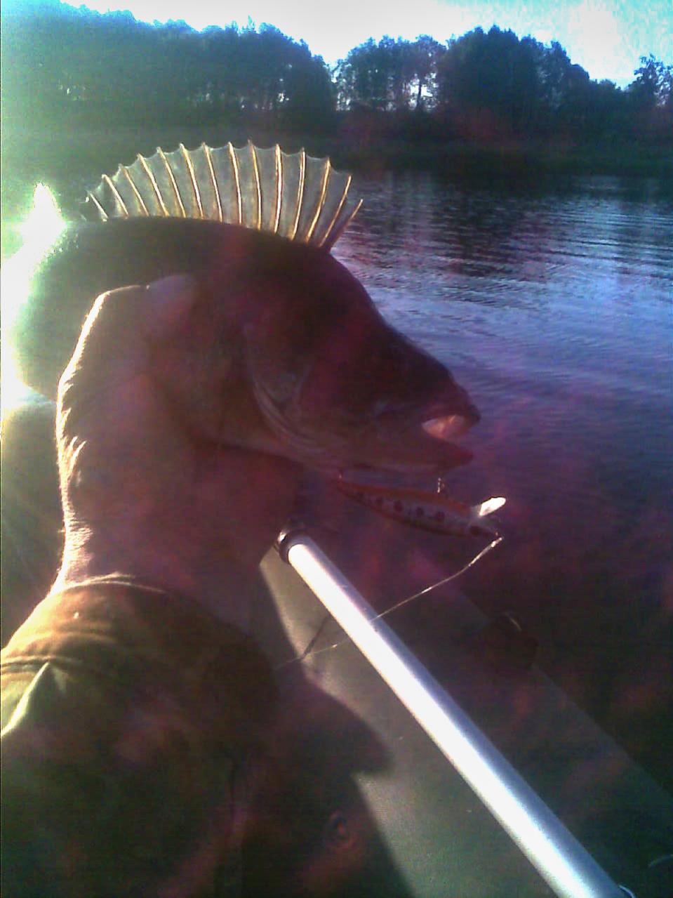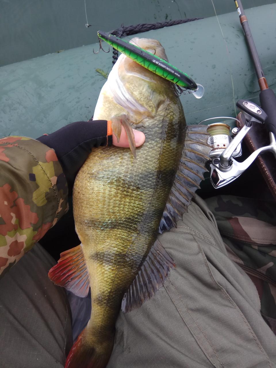 • Вчера выбрались с товарищем на один из водоемов Минской области. Сумашедший ветер и волна не позволяли комфортно облавливать акваторию, так как лодку постоянно сносило. Однако выловленные впоследствии трофеи сполна компенсировали капризы природы. Первый окунь грамм на 500 сошел примерно в двух метрах от лодки, что весьма добавило настроения и придало сил. Следующая поклевка окуня на 1.400 развеяла все сомнения относительно клева хищника. Следующей поклевкой у товарища стала атака щуки на 9.400, которая после фотосессии была благополучно отпущена в родную стихию. Но это уже в другую ветку...