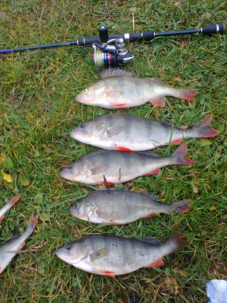 • Сегодня погодка немного подобрела, и решил я опять обработать свои делянки, вообщем всё срослось. Окунь стоял там, где и должен стоять, был крайне пассивен и инертен. Брал как-бы нехотя, делая мне одолжение, стоял далеко от берега и приближаться не желал. Рыбалка поэтому велась чебурашками весом 5 гр., отсюда много обрывов и обрезов об ракушку. Итогом доволен, удалось обыграть 16 полосатых, самые - 460, 380, 300, 280 и 250 гр., ещё 11 поменьше, общий вес 3,3 кг., всем НХНЧ!