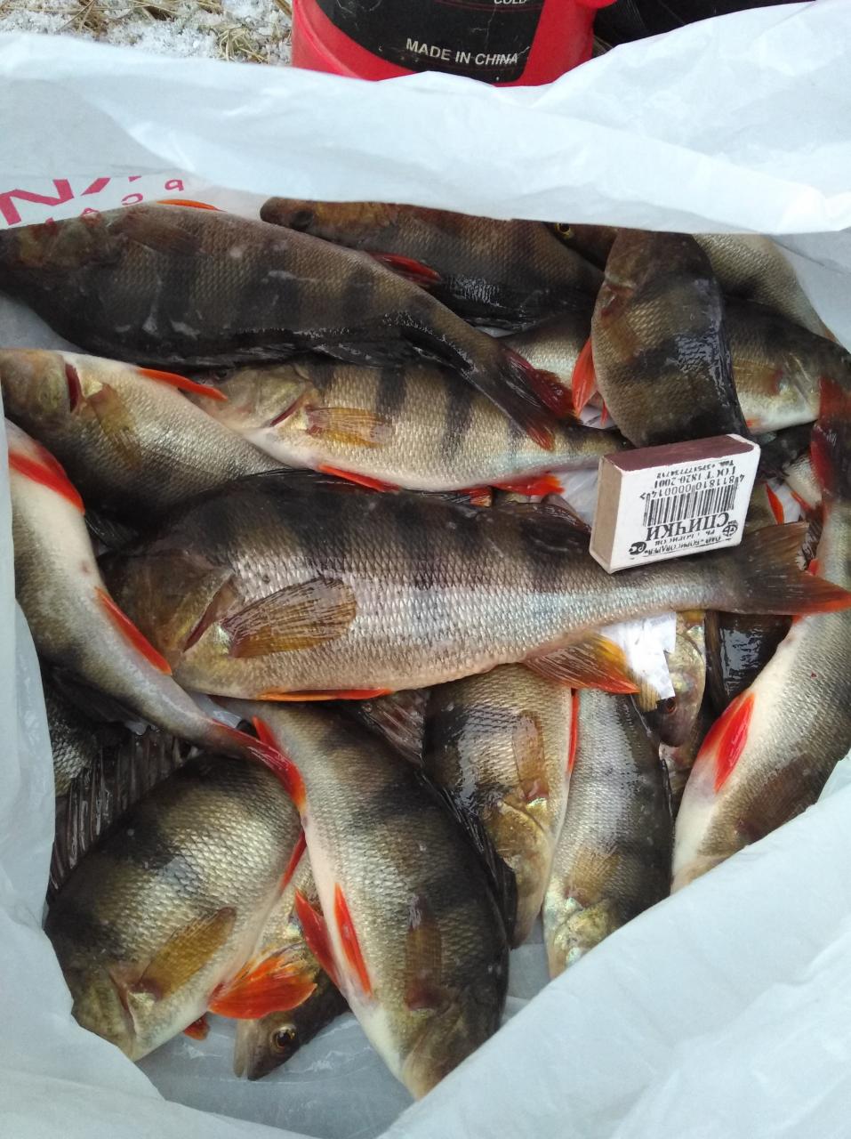 • Сегодня как не упирался в блесну ,балду,балансир не увидел не одной поклевки . Только на черта нашел . Клевали набегами и то после того как подобрал ключик с цветом и нюансами. На все другие манипуляции с цветом и нюансами полный игнор . После бадания с бонусом мой черт был сьеден . После не было поклевок . Результат на фото. 3кг хороших окуней.Нажмите на изображение для увеличения.