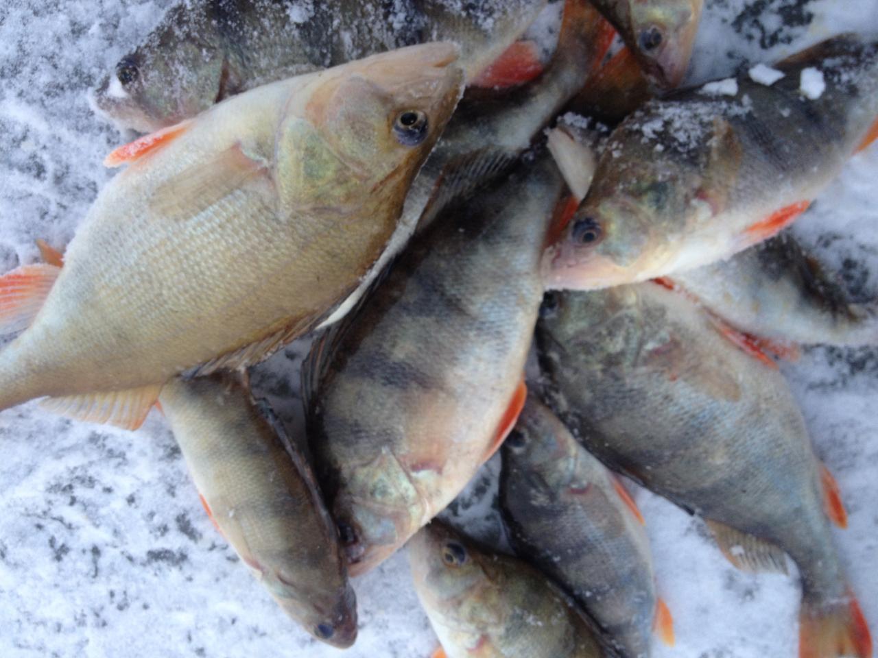 На водоёме утром мороз -12. Народу практически нет - 15 человек окунятников не считаются.:D Лёд монолит, слегка припорошенный снегом - передвигаться одно удовольствие. Быстро приходим на первую точку, разбуриваемся - а не тут-то и было.:D Лёд в толщину практически на шнек бура - больше 25 см. А нам ловить два дня, поэтому решаем экономить силы и больше 5-7 лунок, на брата, за раз не бурим. Ну а что же окунь - а окунь молчит. На первой точке активничает "планктон", но он нас не интересует. Немного поразвлекавшись ловлей ершей и мелочи, отправились в свободный поиск. А поиск результата не принёс - везде полная тишина, даже вездесущей мелочи нет, водоём как вымер. Теперь понятно почему так мало людей.:neutral: Походив целый день, решаем к вечеру вернуться назад, где хоть мелочь была, трезво рассудив, что если есть мелочь, то будет и крупняк.:D И только на закате Наташа выдернула двух окуней приемлемого размера. С таким печальным результатом отправились на ночлег, где ждала тёплая кровать, бутылочка холодного пива и ужин.