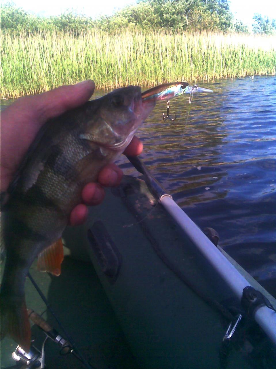 Вчера после работы опять бегом на водохранилище половить окуньков. Клевал редко, но зато нормального размера. Большенький потянул на 780 г. Но, что интересно, жрал только фирменные вобы, китай игнорировал…Просто в этом болоте прилично щуки и она частенько режет флюрповодок, ну и душит жаба ставить дорогие. Вот и вчера лишился Сквада Мин 65…Печаль!