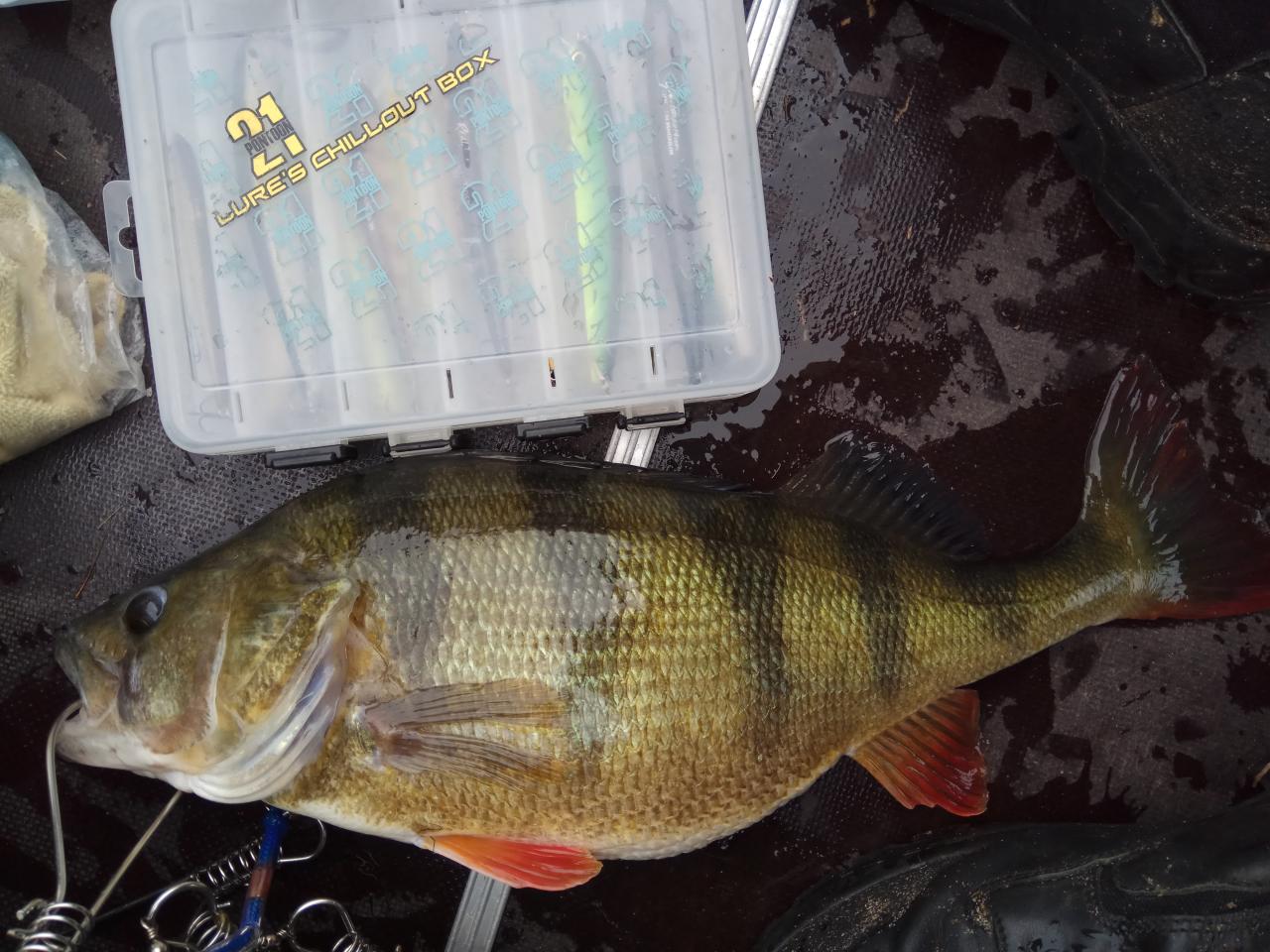 Вчера выбрались с товарищем на один из водоемов Минской области. Сумашедший ветер и волна не позволяли комфортно облавливать акваторию, так как лодку постоянно сносило. Однако выловленные впоследствии трофеи сполна компенсировали капризы природы. Первый окунь грамм на 500 сошел примерно в двух метрах от лодки, что весьма добавило настроения и придало сил. Следующая поклевка окуня на 1.400 развеяла все сомнения относительно клева хищника. Следующей поклевкой у товарища стала атака щуки на 9.400, которая после фотосессии была благополучно отпущена в родную стихию. Но это уже в другую ветку...