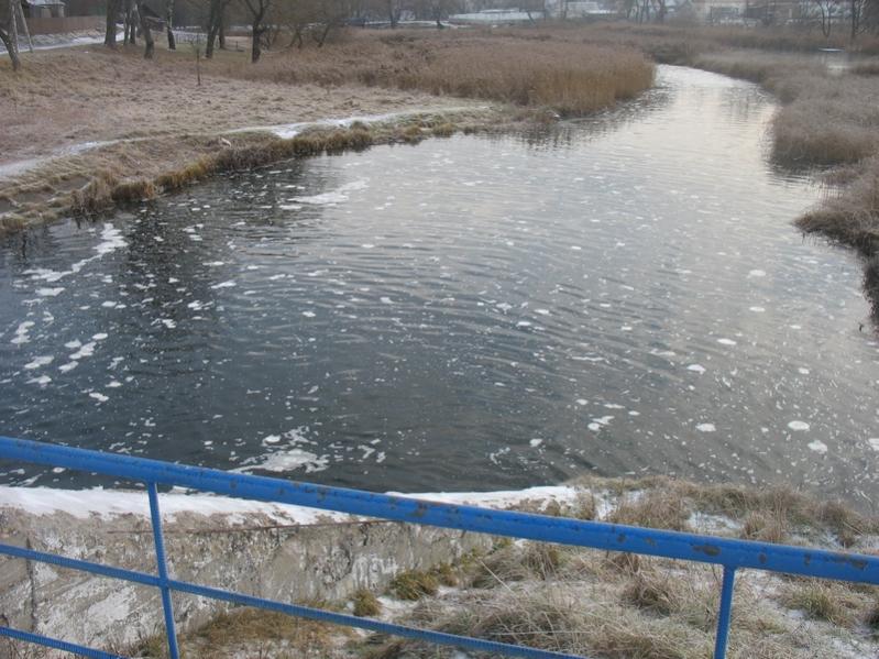 Острошицкий Городок твердая вода около 1 см, на сливе - жидкая вода.