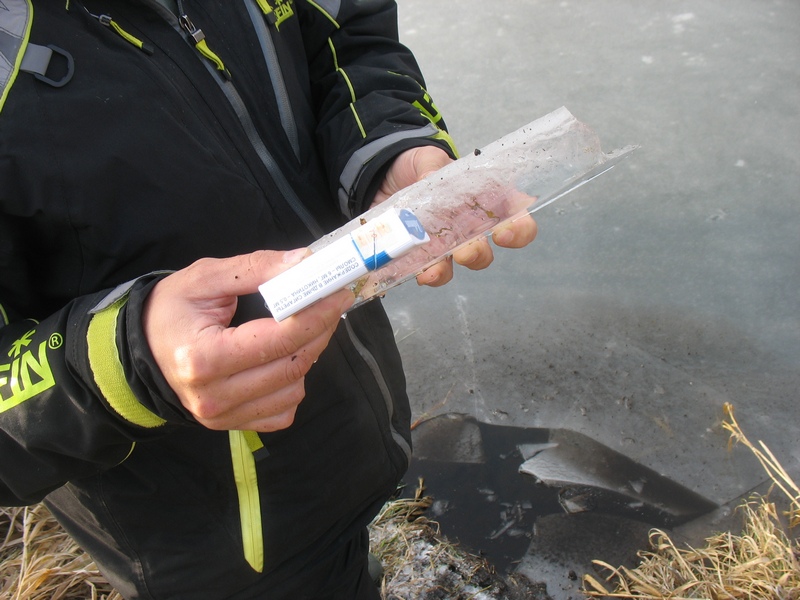 Настоятельная просьба данные о состоянии льда с крупных водоемов сообщать с привязкой к конкретному месту. И, желательно, не на глаз. В любой ситуации можно оценить толщину льда подручным предметом и измерить его дома.