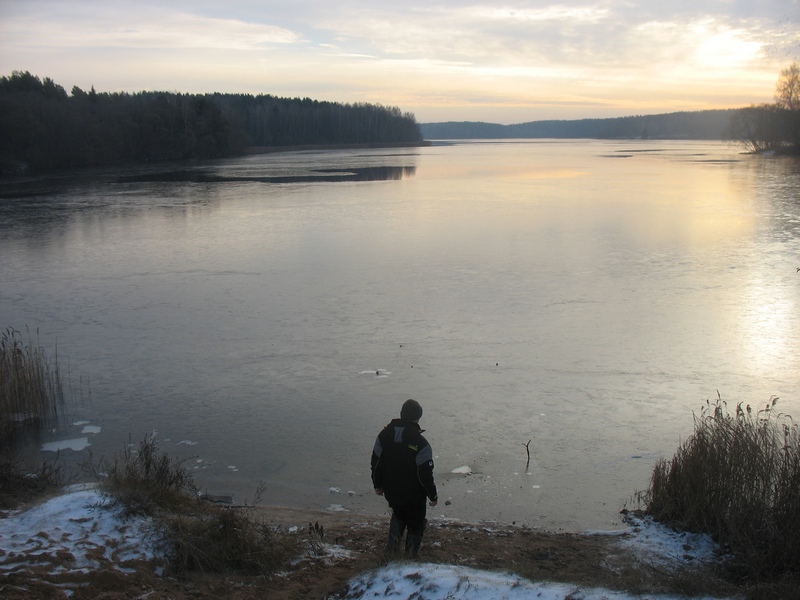 • Доброе утро,коллеги!Брат возвращался из Могилёва в Бобруйск,лёд в районе Чичевич(Чигиринское водохранилище) в метрах пяти от берега около 5 см.Льдом покрыто всё,только под мостом открытая вода.Там рыбаки что-то и пытаются ловить то ли на болду,то ли на что-то другое -не подходил.На льду никого не было.