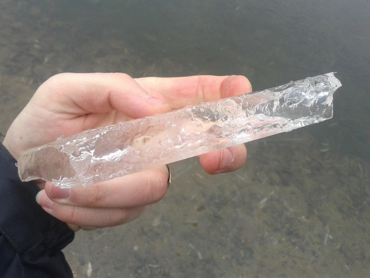 Самый тонкий лед 2 см. прозрачный как стекло.