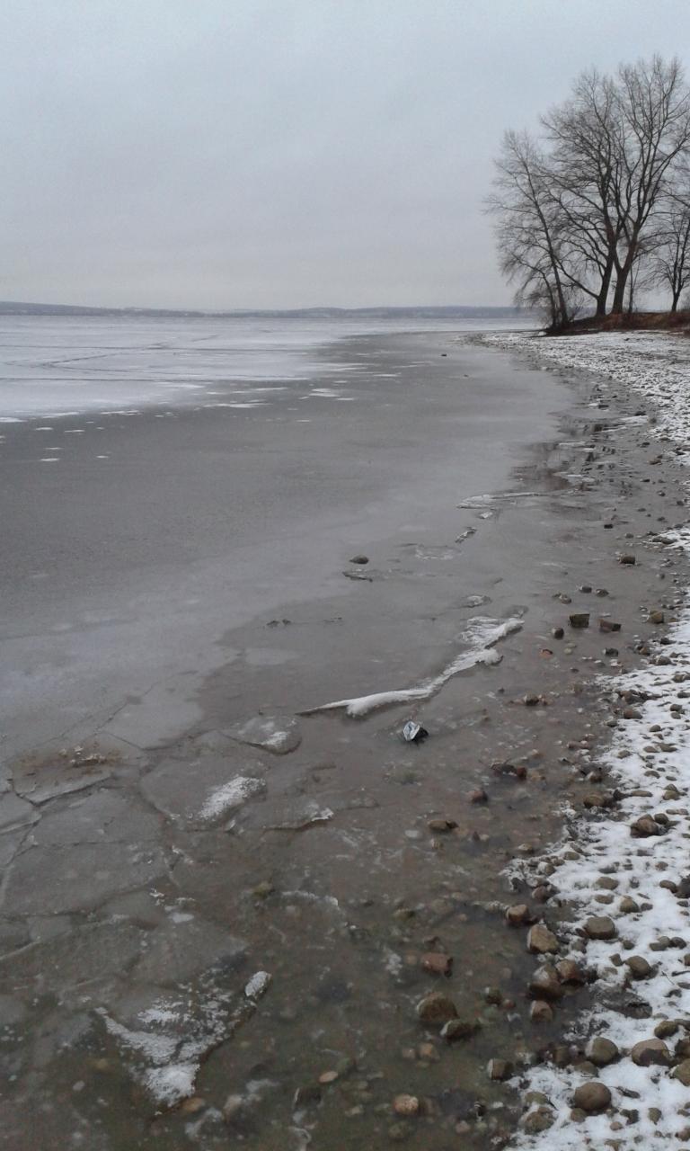 Настоятельная просьба данные о состоянии льда с крупных водоемов сообщать с привязкой к конкретному месту. И, желательно, не на глаз. В любой ситуации можно оценить толщину льда подручным предметом и измерить его дома.