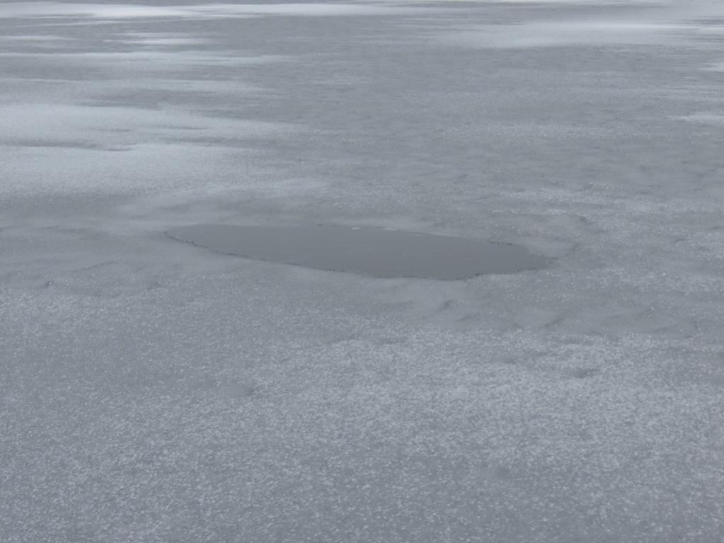 И напоследок - видео уже затянутой полыньи, которую мы сразу приняли за мокрый снег - коего вокруг было в избытке, но потом всё же решили проверить: