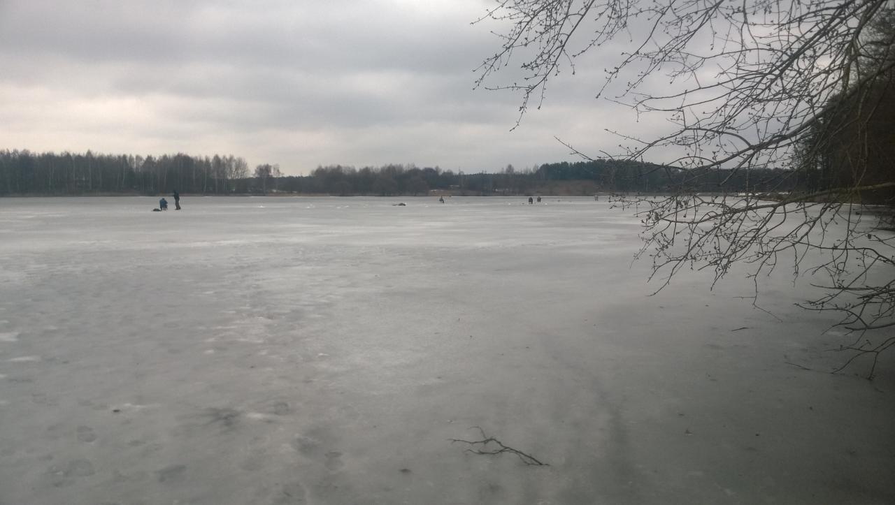 • На русле Минского моря за "Лосиным" лед 18 см.За день не уменьшился.Лед вполне сносный.Кристаллизации не встречал.Заходил с 5 пляжа,в некоторых местах возле берега плавают льдины