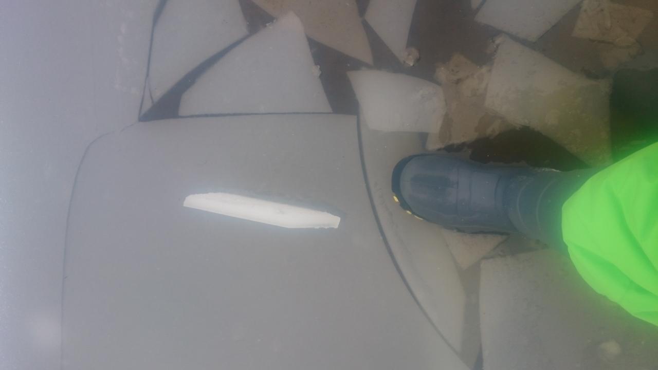 Настоятельная просьба данные о состоянии льда с крупных водоемов сообщать с привязкой к конкретному месту. И, желательно, не на глаз. В любой ситуации можно оценить толщину льда подручным предметом и измерить его дома.