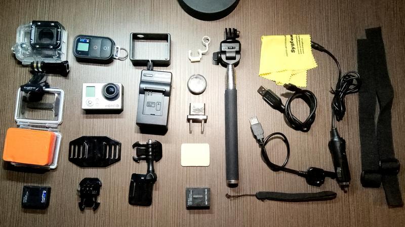 В комплекте: камера, оригинальный пульт, защитный бокс+крышка с отверстиями+крышка с поплавком, зарядное+авто зарядное, 3 батарейки, селфи палка, uv линза, usb шнурок, шнурок для пульта, крепление на шлем+ремни, клеящееся крепление, салфетка для объектива.