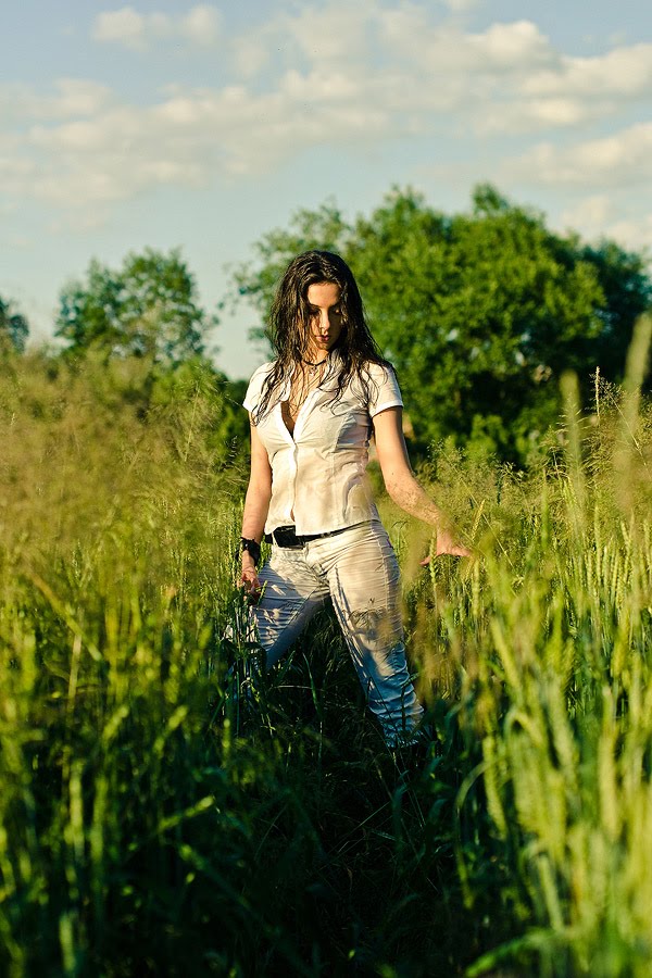 • Вполне смотрибельная девушка... И температура снимка нормальная: это лето, это знойное лето. Потная кофточка - в данном сюжете ОК, волосы отдельными прядками - соответственно.
