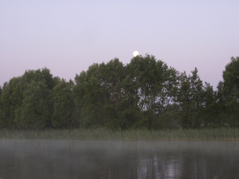 Всё утро стоял густой туман. Уже на работу пора. Вот такое получилось полнолуние.
