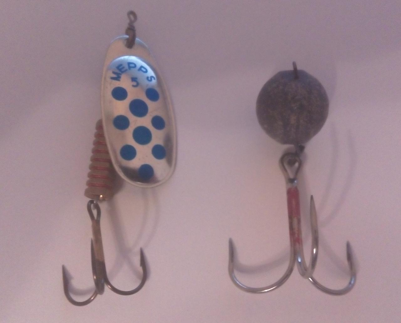 и вот еще одна из любимых снастей местных под сливом, досталась в качестве трофея, закидушка у меня попрочнее была, я тогда карпом увлекался-) Прилетела с того берега и попала мне на основную, для сравнения рядом мепс 5 ка