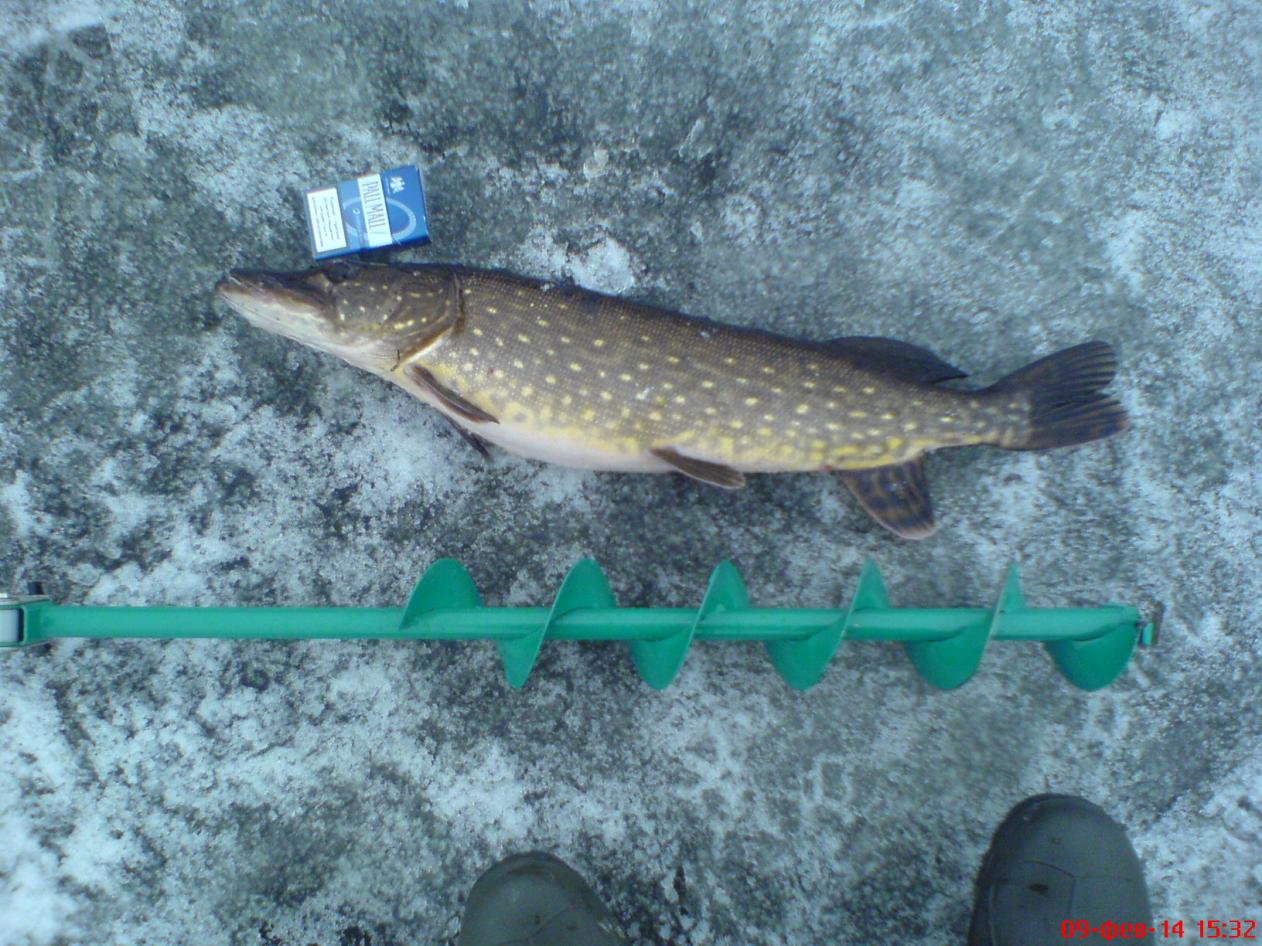 ).часам к 11 солнце пригрело по весеннему, мне в моем костюме стало жарко, Влад же по прежнему наслаждался комфортом. В районе обеда я наконец-то вспомнил, как руки трясутся после приличной рыбы - сначала клюнул окушок на 200 грамм. После него в той же лунке клюнул кто-то покрупнее - чувствовал, что морду поднял и почти вправил в лунку, но зверь вовремя опомнился и сделал рывок, слышно было, как крючок проскрежетал в зубастой пасти и выскочил, ни за что не зацепившись... По ощущениям - больше полкило... через 15 минут в соседней лунке похожая поклевка, секунд 10 удерживал на месте, но глубина в метр не способствовала длительному вываживанию, при подводе к лунке - обрыв на мормышке, видимо где-то все-таки острый край был.