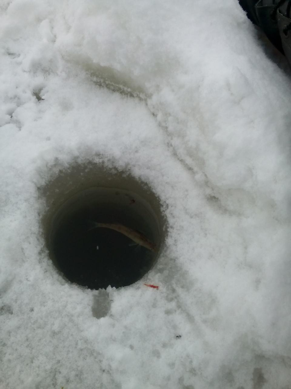 • Доброго дня ! Съездил и я сегодня на "птичку" =) .Немного проспал ,будильник настроен с понедельника по пятницу (( но ничего .Прибыл к пол десятому , за бурил восемь лунок поперёк русла "больше не захотел ,бур 150ка ну его, ведь отдыхать приехал =))". Перепад между лунками чуть больше метра , самая глубокая 5.5 мелкая 4.20. Клевало на мелких до 14.00 потом как отрезало.После были поклёвки детёнышей сундука почти во всех лунках ,чтобы не навредить будущим *трофеям =) решил свинтить .Ловил на мотыля ,поплавок и крюк. Надышался=)) Всем добра!!!Нажмите на изображение для увеличения.