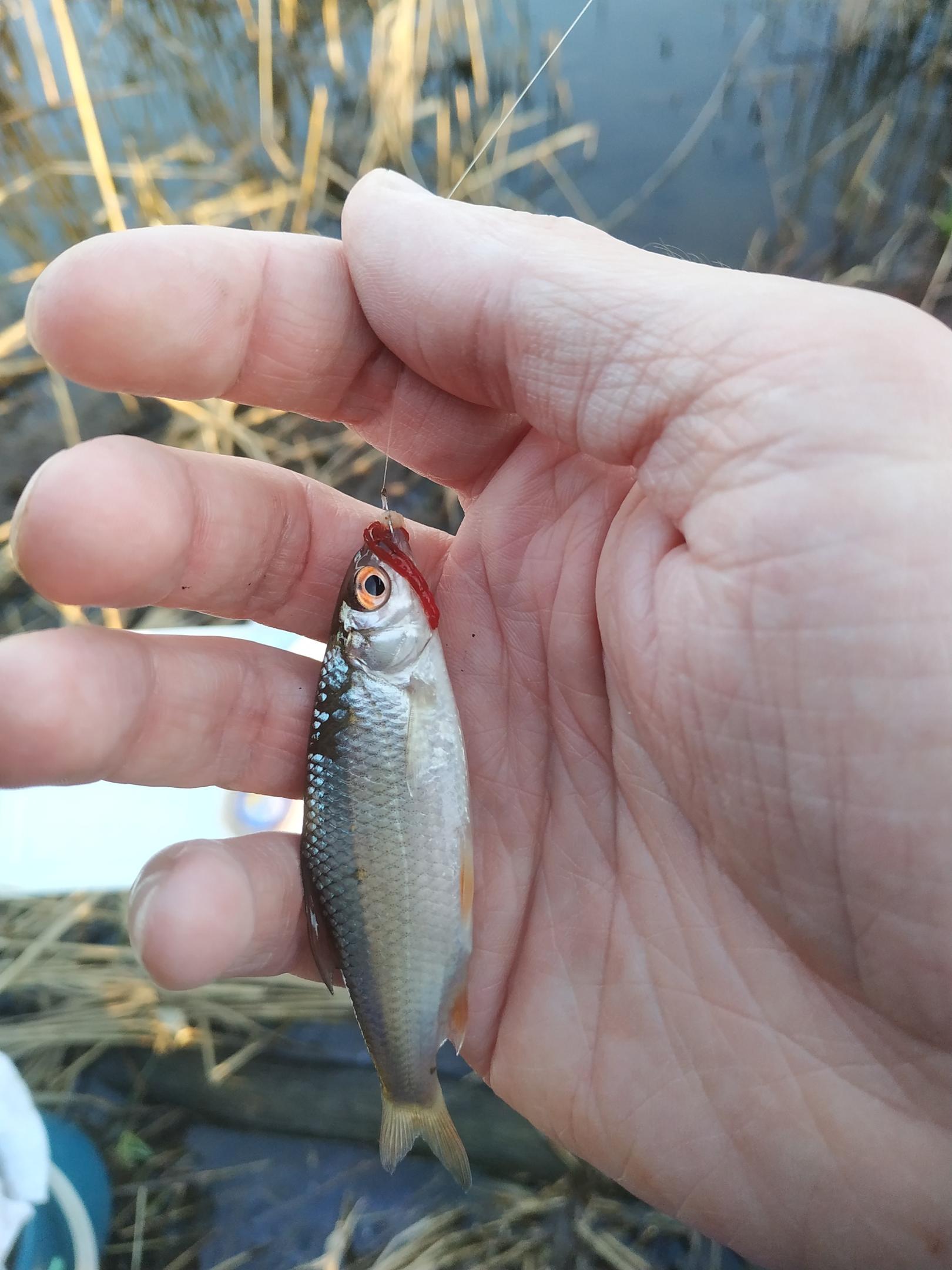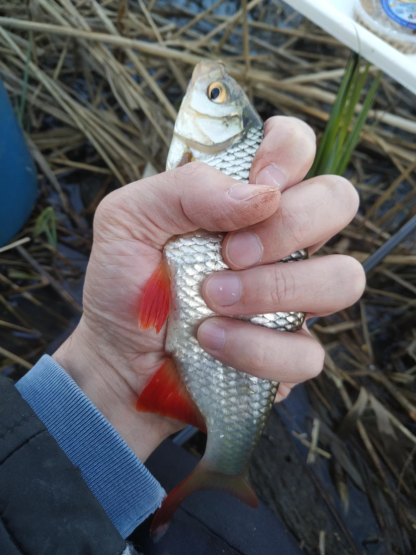 Что-то вроде и поклевывало, но настолько вяло и незаметно, что я даже не уверен, что это были поклевки. За первый час я поймал лишь одну красноперку и видел несколько осторожных тычков, похожих на поклевки. В целом по такой погоде я и этому был рад.