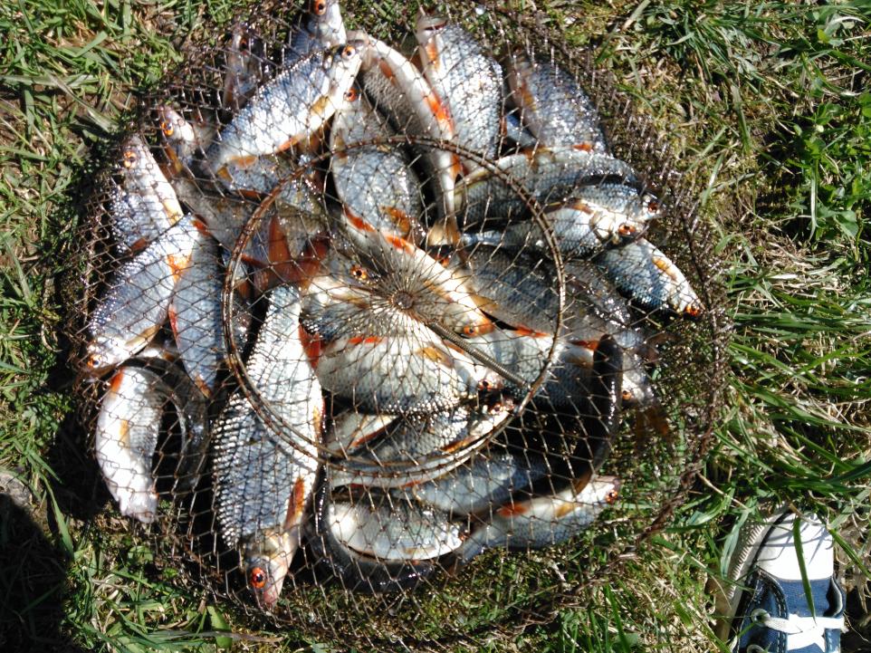 По рыбе. Клюет плоточка, много и в основном мелкая. Когда высыпал из садка чутка не хватило места в моем нормовом ведерке, но мне столько не надо, домой забрал 33 штуки. С утра на макароны заброс-достал, примерно, до пол девятого, потом часик перерыв в клеве и до пол второго брала набегами на те же макароны, манку или один белый опарыш.