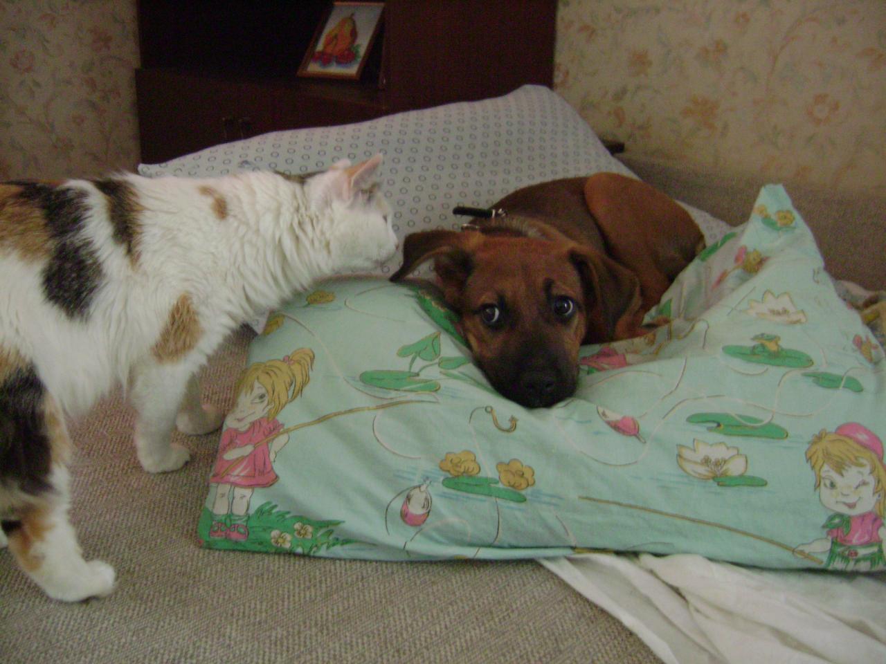 Сын завел свою любимую песню:-Папа,я тебе сейчас все объясню...Оказалось,что та подруга с беременной собакой.нашла на прогулке котенка.Ну и,конечно,предложила моей жене.