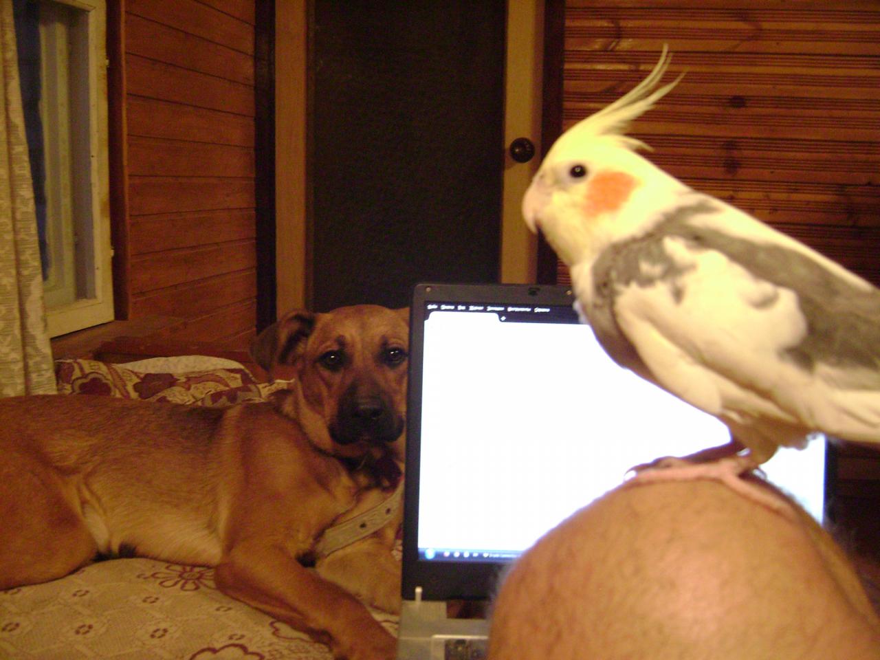 А ближе к лету мне звонит брат и просит забрать у него попугая,потому что "он-дикий и дети его боятся".Вся его "дикость" прошла уже через пару дней.Теперь он ручной,наглый,и сватается к Лике.
