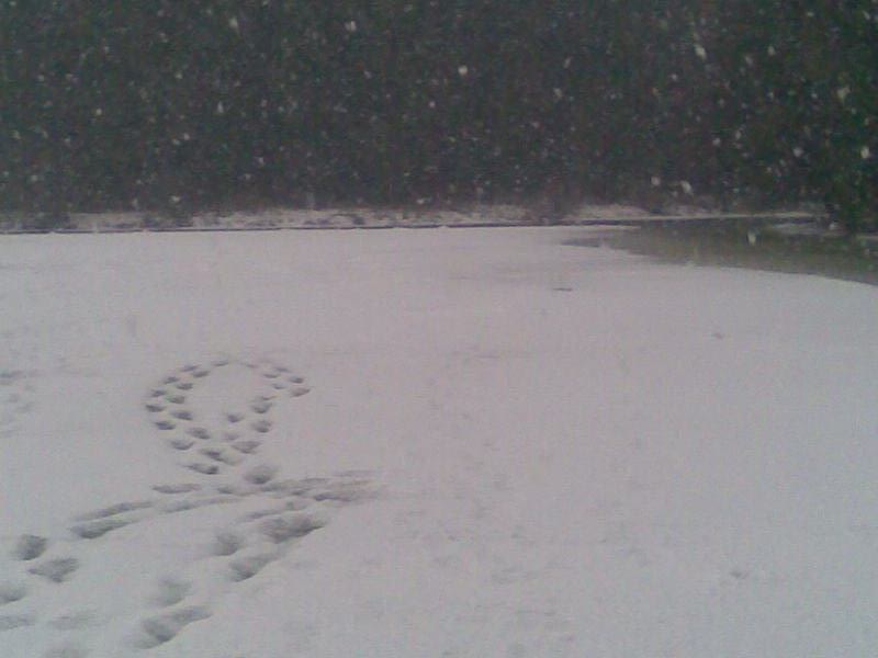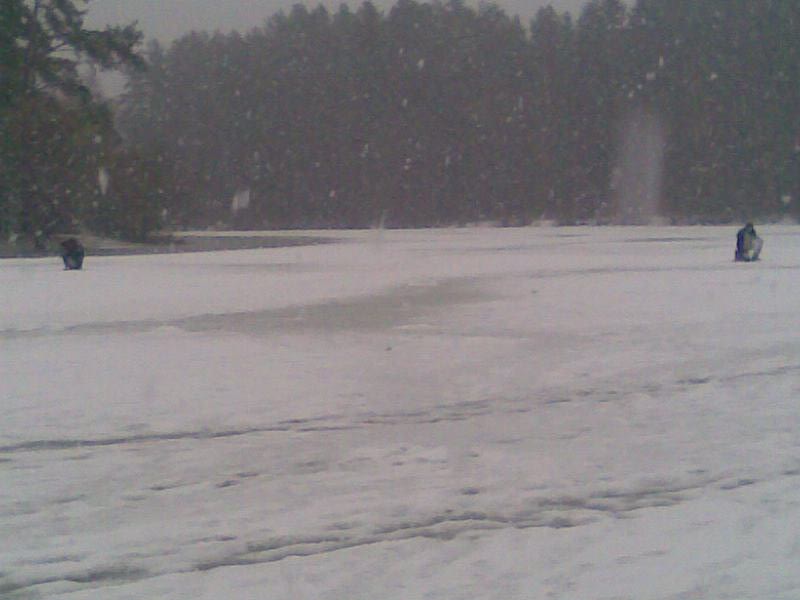 К 12-00 народу было на льду человек сорок, после 14-00 осталось пятеро. Хищник тоже молчал. Из попавших в поле зрения 15-ти (чужих) ставок была замечена одна сработка и то холостая. На лёд попасть можно только с дамбы. Вокруг, по периметру, лёд просел и на нём воды по калено.Нажмите на изображение для увеличения.