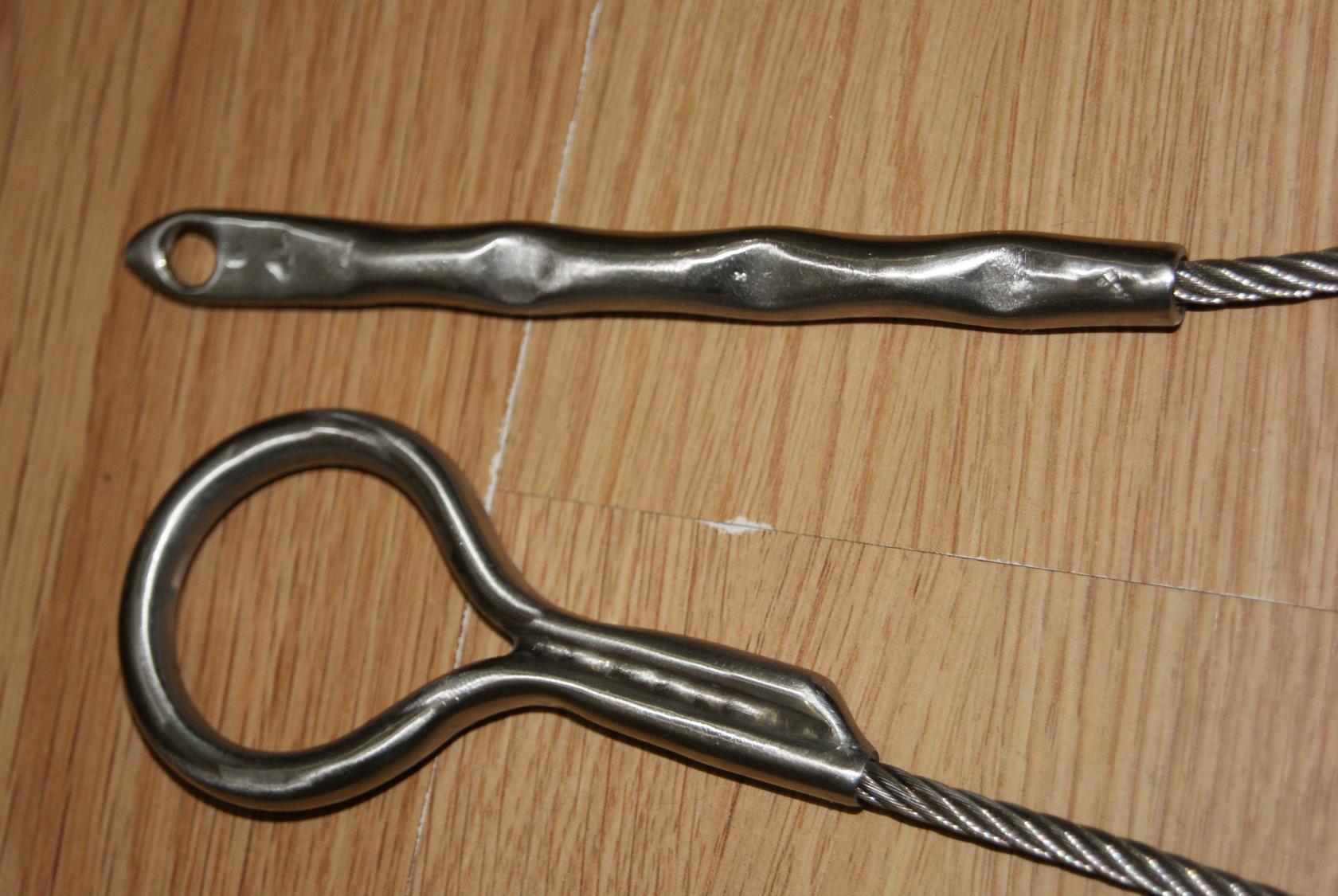 Вот тут, как-то на кануне. Делал кукан товарищу (Dra Gus), ну и себе, заодно. Конечно кукан не эта тема, но я не про него. Просто хочу показать как завальцовывал тросик в трубку. Пробывал драть со всей дури, конец троса с остриём. Трос там, просто в трубке, в трёх местах завольцован. Но, ни чего, с ним, не стало.