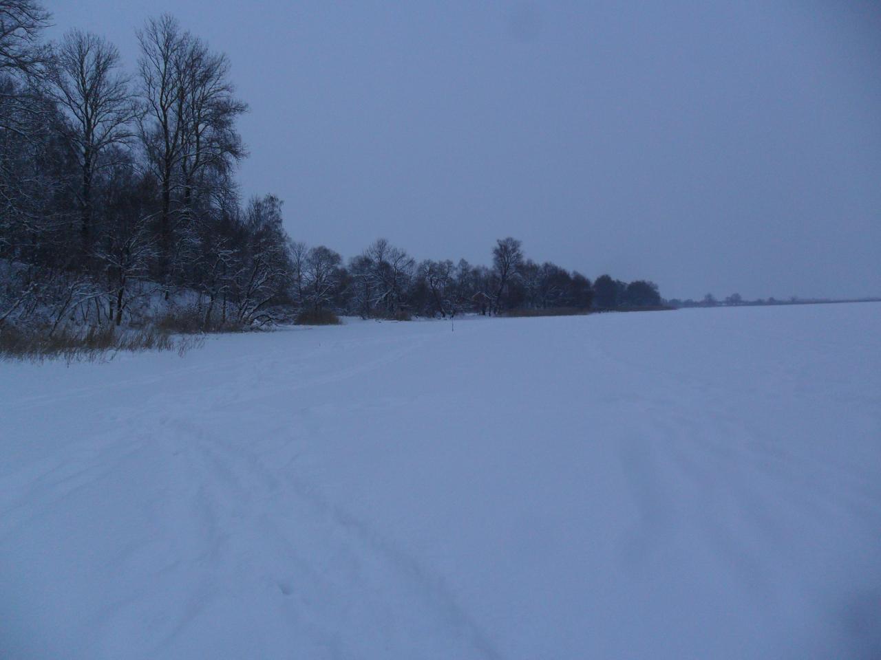 Вчера на озере Вымно начал с прибрежной ловли у деревни, но окунь отказывался клевать. Перешел на противоположный берег, там у знакомого тростника раньше хорошо брал окунь. Не подвел он и в этот раз, размер, правда не трофейный, но это позволило и жерлицы поставить, и на жаренку собрать...Ходить по льду местами не совсем комфортно, под снегом много воды. Друг пробовал ловить на глубине, но то ли с местом не угадал, то ли лещ был не активен.