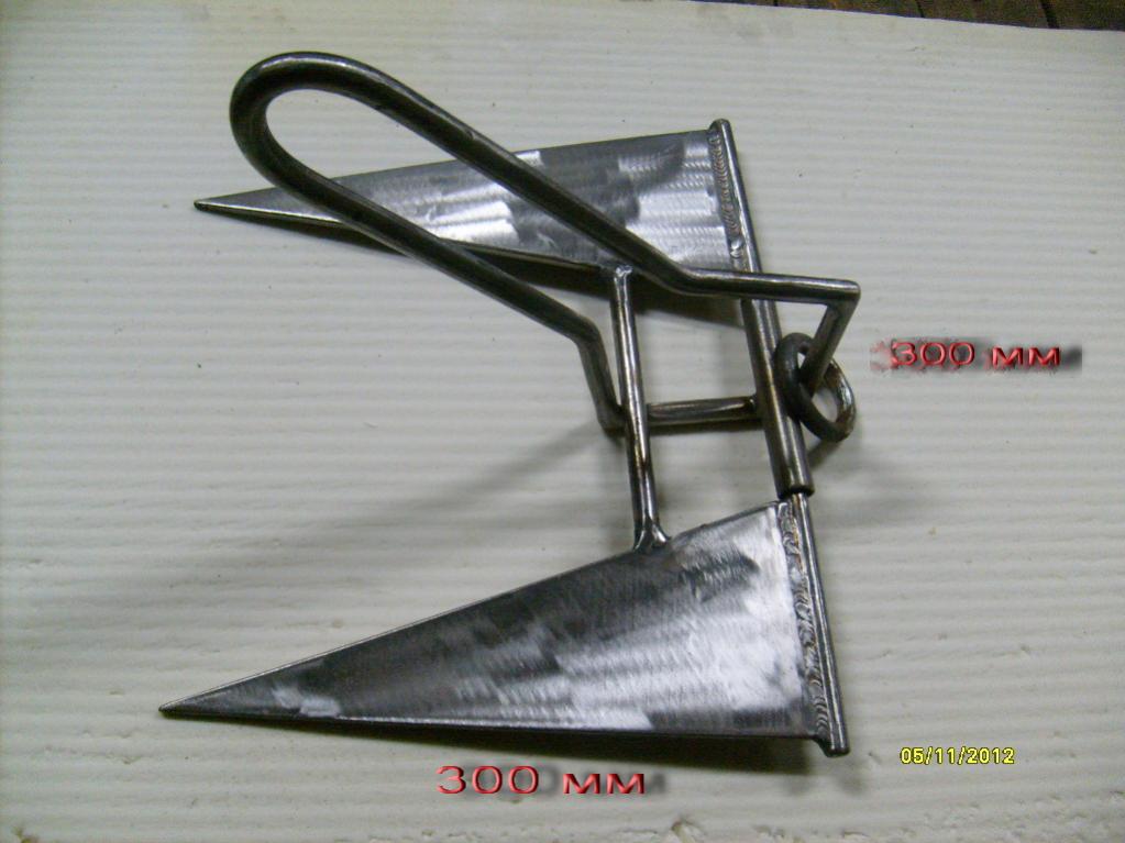 Кто делал якорь для надувной лодки. Выложите, пожалуйста, чертеж или хотя бы фото. Надоело использовать гантели, кирпичи и пакеты с камнями. Хотелось бы сделать что-нибудь красивое как танк и надежное как банк (т.е. чтобы хорошо держал и всегда доставал :-D :-D :-D)...