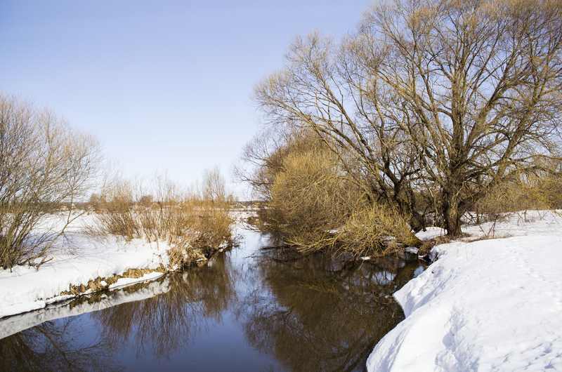 А на фото разве много воды, дно светится с моста? Земля под снегом как раз не мерзлая, поэтому и впитывает все, другое дело снега много и таит медленно, ждем дождя, тогда пойдет.