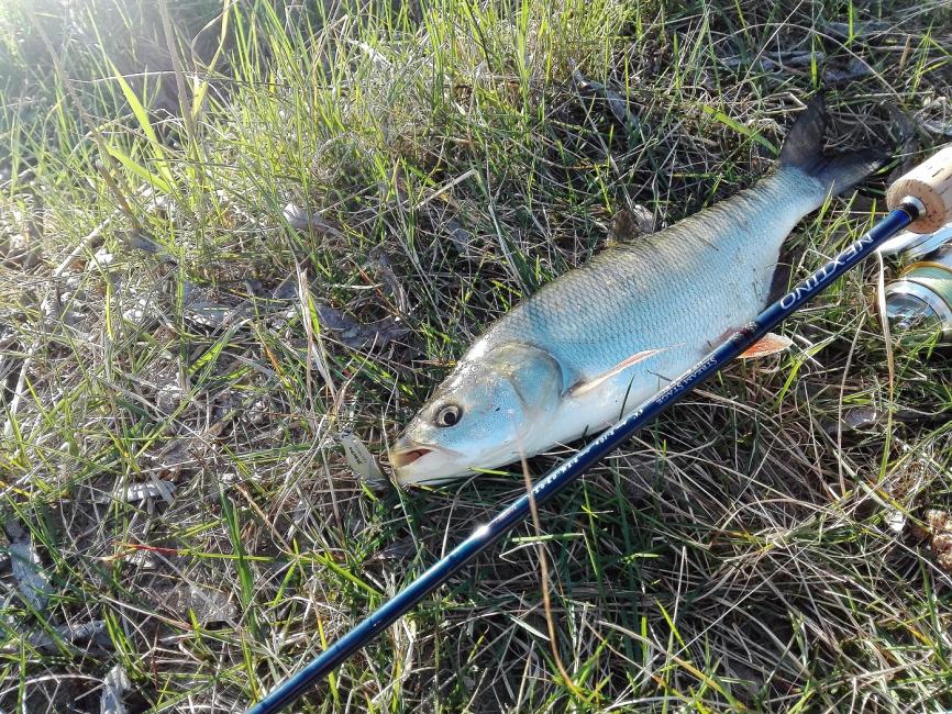 Сильный ветер не давал ни нормально забросить ни сделать нормальную проводку.Во время непродолжительного затишья один жерешок все таки позарился на цикадку...