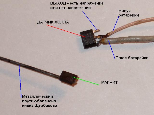 • А в чём принципиальное отличие датчика холла от геркона ? Электронный датчик имеет свои недостатки в виде потребляемого тока, минимального напряжения питания и особенностей алгоритма работы определённых типов датчиков, о чём я написал ранее. У меня была идея так же устройства на фотодатчике от компьютерной мышки, но там ещё больше недостатков. С герконом не всё просто, если динамик низкоомный, то со временем при включении пищалки и светодиода контакты могут потерять былую проводимость, и периодически геркон может уже и не срабатывать потом.