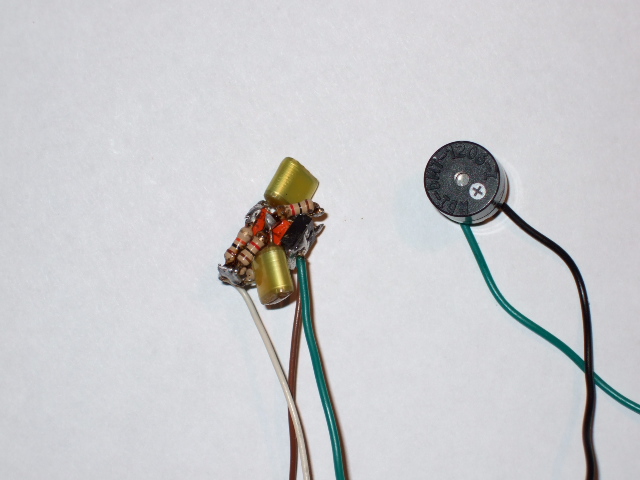 По задумке, кнопки выключателя на удочке не будет, вместо него будет стоять геркон. Идея Дмитрия Полулех по простоте гениально ! Лучше придумать невозможно. Единственно, что бы при замыкании контакты геркона со временем не потеряли своей проводимости (как ни как, пищалка хоть и миллиамперы, но будет потреблять), я поставил геркон как управляющий элемент на полевой транзистор. Собственно он и будет размыкать и замыкать цепь питания схемы при замкнутом герконе. Сама пищалка выполненна по традиционной в интернете схеме, с единственной разницей - на транзисторах обратной проводимости (не кт315, а кт361) , это понадобилось сделать для управления n-каналным полевым транзистором который будет подавать электрические импульсы в динамик. Смысл этого транзистора в том, что на обычных кт315 или кт361 падение напряжения на переходах более 0,7 вольт. А у нас питание схемы всего 3 вольта. На динамик пищалки с таким падением напряжения будет приходить всего лишь 2,3 вольта из трёх. Добавление полевого транзистора позволяет подать на динамик все 3 вольта от батарейки. Частоту скорее всего придётся подобрать порядка 1 килогерца, на этой частоте компьютерные пищалки гудят особенно громко.