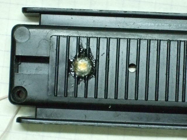 Вобщем, кто будет крепить к удочке светодиод, вот вам наглядный пример, как его нельзя крепить. Так как я положил им на стол и сверху случайно надавил. Естественно он вылез обратно :) По этой причине попробую использовать светодиод со светодиодной ленты (думаю, даже отпаивать его не буду, отрежу кусочек самой ленты), толщина его не больше толщины пластмассы удилища, следовательно выпирать из коруса он не будет.