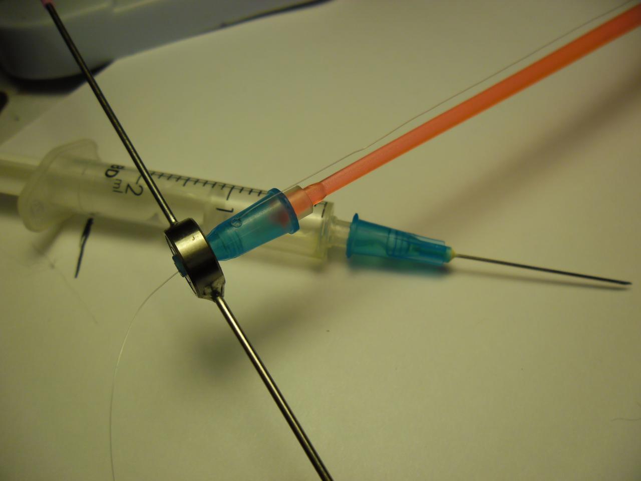 Друзья придумал(усовершенствовал кивок:D) вот такой переходничокодноразовый шприц, отрезал носик и насадил на хлыстик, плоскогубцами выдрал иглу из переходника и просверлил отверстие 1.2мм, срезал выступы и вставил в кивок