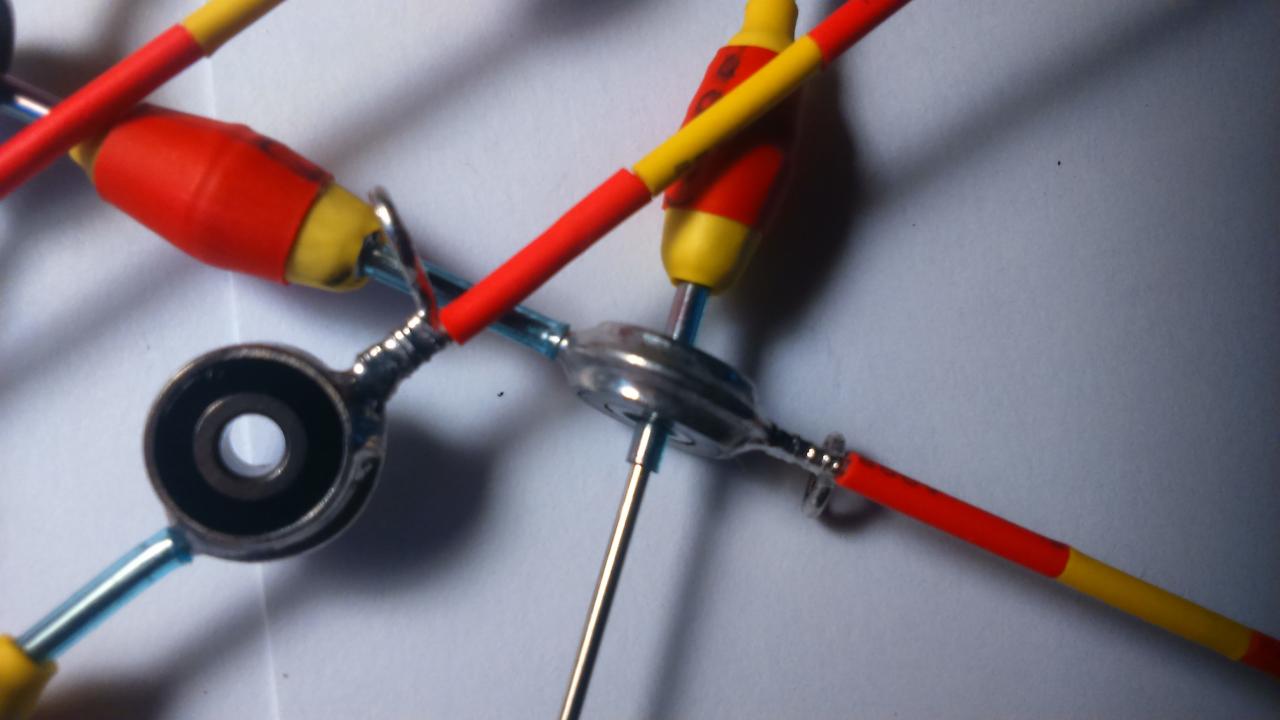 тюльпан впаян в ось подшипника - что исключает наматывание лески на удилище при перевороте кивка .изогнутые плечи тоже с этой целью