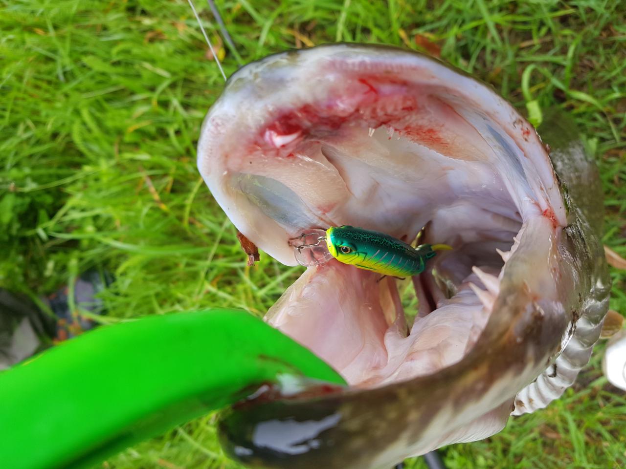 Борьба была действительно интересная, пришлось приложить усилия для того, чтобы хотя бы поднять ее на поверхность с глубины всего лишь 1.5-2 метра, возле самого берега дала просто нереальную свечу и все началось по новой - визг фрикциона, 10 метров шнура слетело со шпули, сдаваться не хотела. Достать из воды помог рыбак.